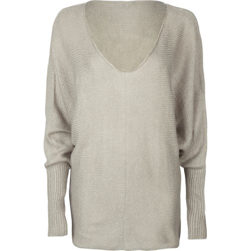 Full Tilt knit sweater. Lightweight and slightly sheer. Long length. Loose fit. Plunge v-neck. Long dolman sleeves. 100% acrylic. Hand wash. Imported.